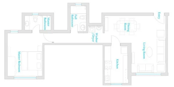 Max Guests: Up to 2 people Bathroom: 2 Full Bathrooms No. Of Rooms: 1 bedroom, living room, dining room and kitchen